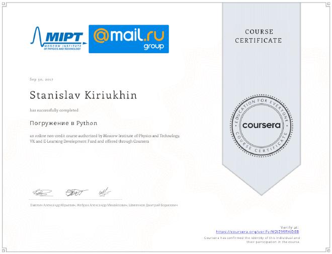 An online, non-credit course authorized by the Moscow Institute of Physics and Technology, VK, and the E-Learning Development Fund, and offered through Coursera.